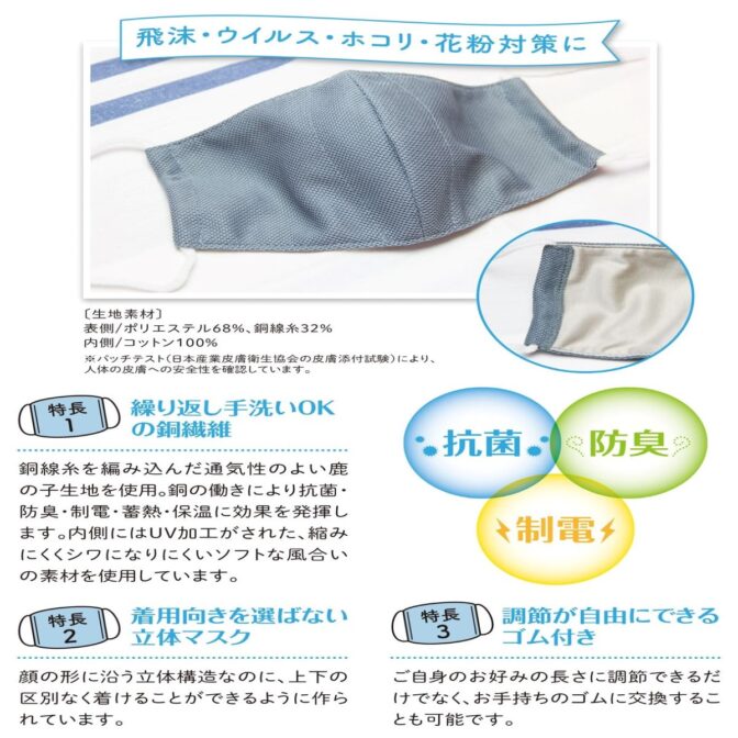 超極細・高純度の銅繊維を使用した 抗菌マスク
